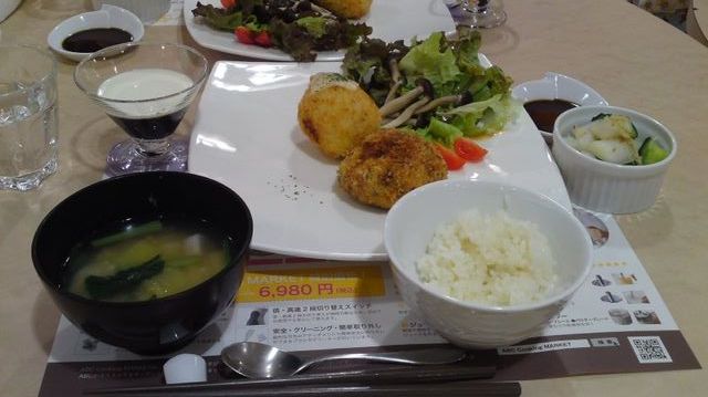 これは昨日の料理教室で作った「メンチカツとハヤシライスボールのバランス献立」です。